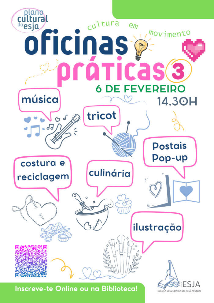 Para preparar o Dia dos Afetos, vamos realizar as “Oficinas Práticas 3” no dia 6 de fevereiro! Vais poder participar em oficinas de tricot, de música, de costura e reciclagem, de postais pop-up, de ilustração e de culinária.