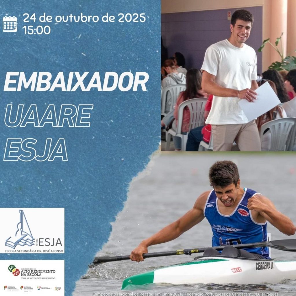 A Escola Secundária Dr. José Afonso, no Seixal, tem a honra de anunciar que o nosso ex-aluno Duarte Cerdeira tomará posse como Embaixador UAARE (Unidade de Apoio ao Alto Rendimento na Escola)!